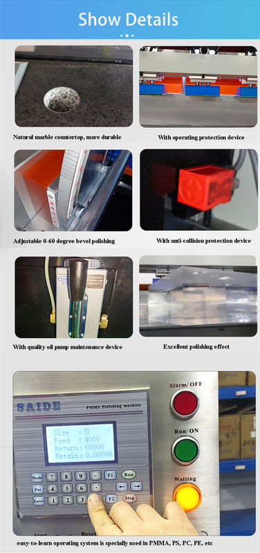 SAIDE oferuje usługi dostosowywania maszyny do fazowania krawędzi SD-G1000, znanej również jako maszyna do gratowania krawędzi akrylowych, sprzęt do ukosowania krawędzi akrylowych i sprzęt do gratowania krawędzi akrylowych. Nasze maszyny są produkowane w Guangdong w Chinach i posiadają certyfikat CE.